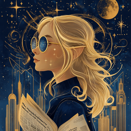 Create a whimsical and mystical style, blending futuristic elements with a sense of playful wonder and cuteness. The visuals should feel like they’re pulled from a dream, with glowing colors and soft gradients. Characters are adorably designed, with exaggerated expressions and charming details. The environments are ethereal, blending fantasy and cosmic elements--filled with floating islands, stars, and glowing creatures. Use smooth, flowing lines and soft lighting, with radiant, magical glows around objects. The aesthetic is a mix of cosmic fantasy and sci-fi, with a delicate balance of light and shadow. Everything feels lighthearted yet epic, like a magical universe where innocence and adventure coexist. A surreal, reflective planet where the ground and sky are like endless mirrors. The Mirror King, a tall figure made entirely of reflective surfaces, stands before Luna and Sol. He distorts their reflections, showing twisted versions of themselves. The mirrors stretch into the distance, reflecting light in odd, bending ways, and the sky is filled with shimmering reflections of galaxies.