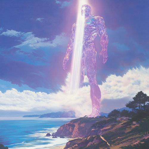 The Buddha , the giant Buddha, the halo, the majesty, the shock, the tiny man in front of the Buddha,wide-eyed, scowl, serious, ray tracing, god rays, UHD, anatomically correct, super detail, high details, best quality, 16k --ar 16:9 --v 6.0
