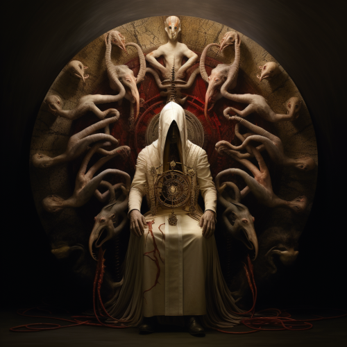 "Creation of Adam" with galaxies and nebulae. Adam is human and God is an AI cyborg