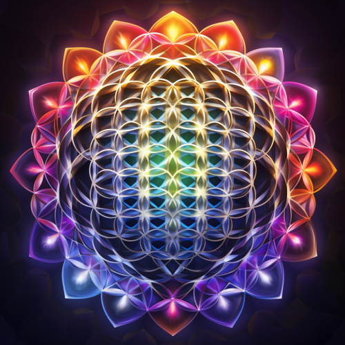 the flower of life, intersection of circles, womb of creation, space and time, energy, face of God, codes of the matrix, relates to frequency and vibration, cymatics, as above so below