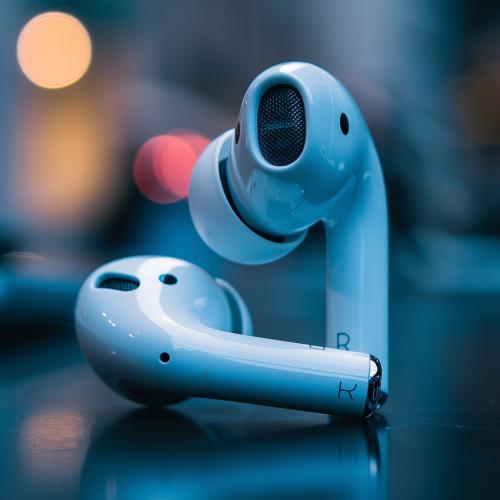 Generate a digital art for Deep navy blue background with small, minimalistic digital art elements such as a laptop, a webcam, a microphone, and a pair of headphones at the edges, in a flat lay arrangement. Use contrasting colors like light grey, white, and soft teal for the digital art elements to ensure they stand out against the deep navy blue background. The overall design should be clean and minimalistic, ensuring that the slide content remains the focal point. . --ar 443:960