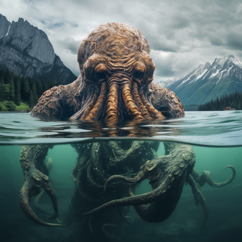 giant blue phosphorescent octopus in ink black water --v 6.0 --ar 16:9 --s 200