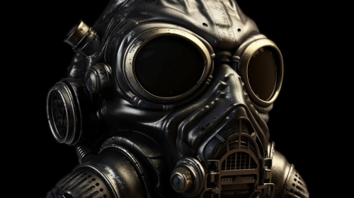 futuristic angry gasmask monster random , dark black background --ar 16:9 --v 5.0 --s 750