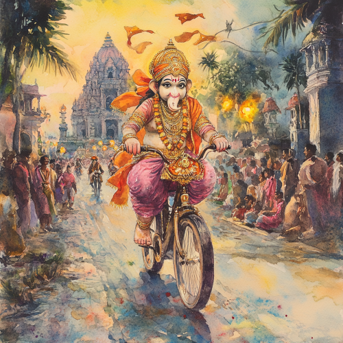 Full side view of a stylish man riding a bicycle, wearing an eye-catching, quirky Christmas ugly sweater adorned with small, twinkling lights, without a helmet. The sweater has a fun, festive pattern, and the man exudes a cool, laid-back vibe. The entire bicycle is visible, with its design complementing his style, set against a lively city street backdrop, slightly blurred to focus on the rider. The glowing lights on the sweater add a warm, festive atmosphere, contrasting with the urban night setting and subtle holiday decorations