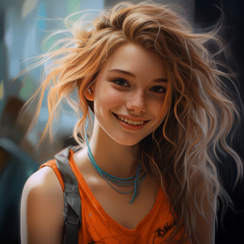 photorealistic high detail epic teenage girl, She is trouble and fun. Her Mischief is love. Joy Radiates from he