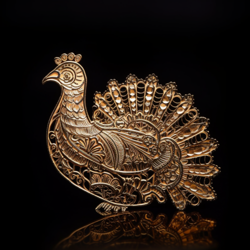 Square sticker of a very ornately cut extremely shimmering GOLD AND very bright shining bronze Cut Paper of a big fat Turkey, isolated against a deep black background, centered composition, extremely dramatic studio lighting, extreme and very crisp detail, 16K, photorealistic, dream --chaos 45 --stylize 995 --weird 65 --v 5.0