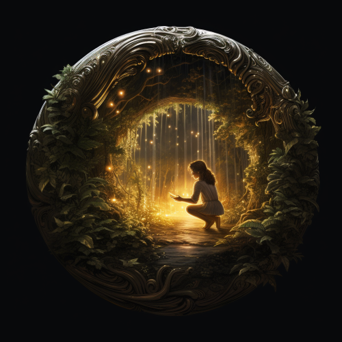 an image that captures a pivotal moment from the 'Bronze Ring' fairy tale. Depict a scene where the protagonist, a young and kind-hearted individual, discovers the magical bronze ring for the first time. The ring should be prominently featured, showcasing its intricate design and a faint, otherworldly glow. Surround the protagonist with an aura of curiosity and wonder as they reach for the ring, which is nestled within a hidden or mystical location. Use lighting and details to emphasize the magical and enchanting qualities of this scene, creating an image that evokes the sense of mystery and adventure central to the story.