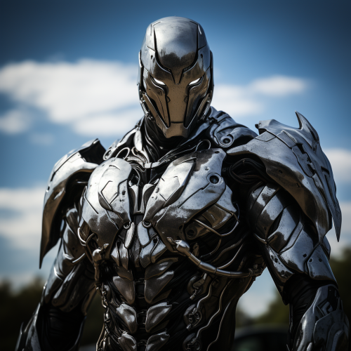 ghost based armor, superhero, all silver armor/suit , ironman esque. Apocalyptic setting. --s 250