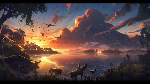 ark survival evolved image, illustration, very high Quality, --ar 16:9 --niji 5