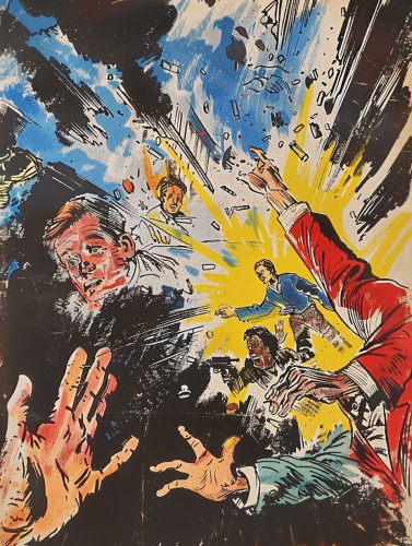 a comic illustration from the poster cover of the movie drawn by The Breakfast Club Wally Wood, --ar 3:4
