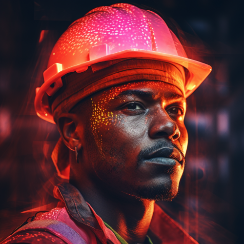 alfredo330 Nikon D850, Nikkor 70-200mm f/2.8E FL ED VR lens, Resolution 45.7 megapixels, ISO sensitivity: 64, 35 year old man, serious, dressed in construction worker's clothing, standing, looking at camera, black background --v 6.1