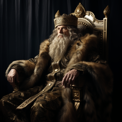 A surreal gothic horror scene in a dreamlike atmosphere where the character from the provided image is walking up to a grand throne room made entirely of marble. The room is filled with ornate wall hangings and tapestries of gold and purple, creating a regal and eerie ambiance. At the end of the room, a tall and proud golden throne sits on a raised dais, gilded with platinum. Resting on the throne's seat is a golden crown, set atop a soft violet pillow and adorned with priceless gems that sparkle faintly in the dim light. The player character, a figure wearing heavy furs and leather armor with a hood pulled low, walks slowly toward the throne. In one hand, they hold a small flame conjured from their fingertips, while their bow and arrows are slung across their back. The character's expression is calm yet determined, as if they are aware of the power and danger surrounding them. Beside the throne, Zantras the Kingmaker stands tall on the dais steps, watching the character approach. He is slender and handsome, wearing deep blue and black robes, with a simple sheathed dagger at his side. His presence is regal but unnerving, as though he belongs both to this world and beyond it. The overall scene exudes a gothic, haunting atmosphere with a blend of elegance and foreboding, as the character approaches their destiny.