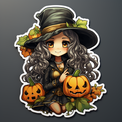 Edgy Urban Setting: A photo of a dimly lit street in a modern city at dusk. Patches of mist creep along the ground, and Halloween decorations (pumpkins, spider webs) adorn the surroundings. In the center, a young woman (Asian descent) is dressed in a sleek, modern witch costume from Wicked. The details on the costume shimmer under the streetlights, making it evident it's of premium quality. She's posing with her broomstick, ready to take flight.