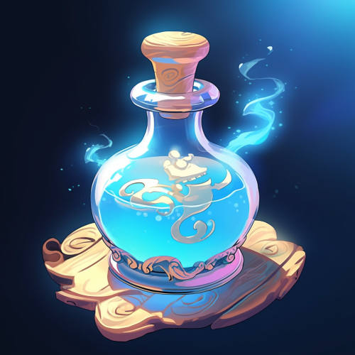 2D illustration, disney style design, brightly lit, a magic healing health potion sitting on a table, cool, 8k --no people, humans, animals, grainy, blurry, confetti, random chunks, clutter --niji 5