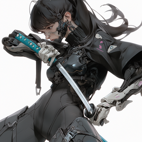 a futuristic biker samurai girl fighting using katana, Hajime Sorayama anime style --niji 5 --style expressive --s 750