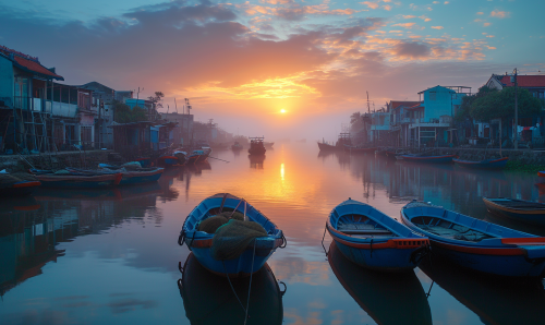 fishing village dock and houses, inspired by mordecai ardon and odilon redon and pierre bonnard and edouard vuillard and otake chikuha and drexter and francis hodgkins, no text, no watermark, no signature, no copyright --v 5.0 --ar 14:10 --no borders, frames, split frames