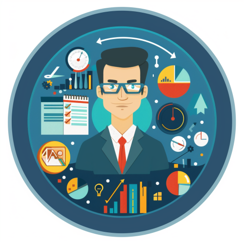 A badge for a business analyst containing elements that highlight his skills and relate to his work. --v 6.0