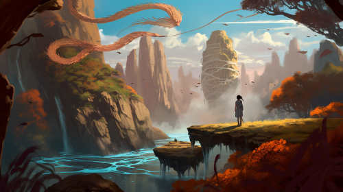 Amidst the spiritual energy of the Avatar world, a poignant moment unfolds as a human undergoes a metamorphosis into a dragon spirit, capture the emotional depth in a cartoon-style illustration reminiscent of Avatar: The Last Airbender, Illustration, cartoon style of Avatar: The Last Airbender, --ar 16:9 --v 5.0