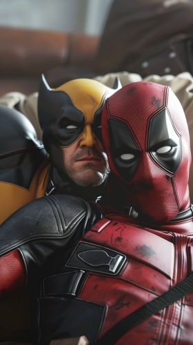 Transformed fire truck with Deadpool design, chaotic and playful.