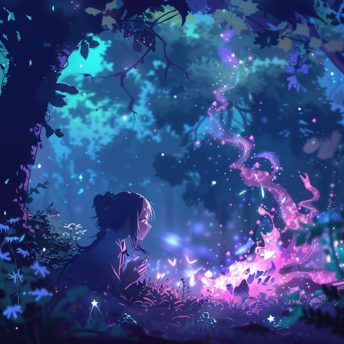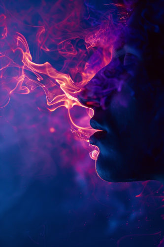 futuristic blurry minimalist photo, A magician whispering into the flame to conjure a spirit to come out of it, deep tones of blue purple and dark magenta --ar 2:3 --v 6.0