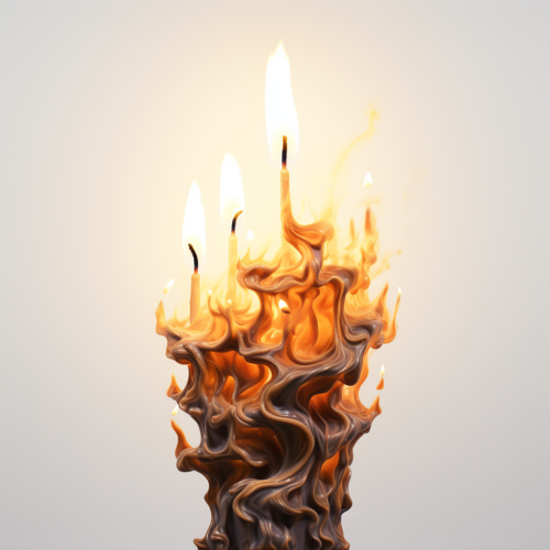 Composite Jedi style, A candle's flame flickering, on the brink of being extinguished, with tendrils of smoke rising, the ebbing of light and energy, synonymous with fading life, Abstract darkness, The dying flame is emblematic of the fleeting nature of life, A transition from relative brightness to a sense of loss and vulnerability