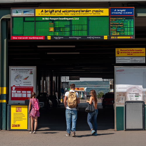 "A bright and welcoming border crossing scene between Ukraine and Romania. In the foreground, two travelers stand next to their neatly organized luggage, ready for inspection. One traveler holds documents (passport, boarding pass), while a customs officer checks the bags. The allowed items, such as fruits, cheeses, wine, and cigarettes, are displayed on one side, with a green ‘approved’ sign. On the opposite side, a small pile of prohibited items like weapons, counterfeit goods, and illegal substances is marked with a red ‘prohibited’ sign. In the background, a luxury transfer van with open doors awaits, its interior visible, showcasing leather seats and spacious compartments for luggage. Above, icons of airplanes and cars suggest smooth, cross-border travel. The border checkpoint is framed by mountains and flags of Ukraine and Romania fluttering in the breeze, reinforcing the idea of seamless, well-organized travel."A vivid travel scene showing a modern car on a scenic journey from Ukraine to Bulgaria to the sea The image shows the car driving through the picturesque landscapes of Romania and Bulgaria, near the sea with an emphasis on dynamic road signs for shopping vignettes and toll roads. Add a border checkpoint with a MOT sign, and badges or decals representing your green card and life insurance. Add visuals like maps, hotel reservations, and travel essentials to emphasize adventure and preparation. Use bright, eye-catching colors and detailed imagery to convey a safe and enjoyable journey.Depth of field, Tilt blur, Shutter speed 1/1000, F/22, White balance, 32k, Super resolution, Pro Photo RGB, Backlight, Backlight, happy Lighting, Incandescent, Soft Lighting, Surround, Conte Jour, Global Illumination, Global Screen Space Illumination, Scattering, Shadows, [...]