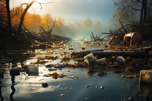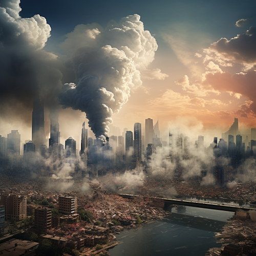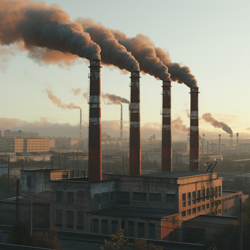 a realistic image split into two contrasting sides, with a complete, tall tree standing in the center. On the left side, depict a heavily industrialized scene with factories emitting thick fumes from chimneys. Show the tree's leaves actively absorbing the smoke and pollution. As the fumes pass through the tree, they transform into clean air, brightening the scene on the right side. This side should be a vibrant, luminous ecosystem full of wilderness, lush greenery, clear skies, and abundant wildlife, representing health and nature's resilience. --ar 16:3 --style raw