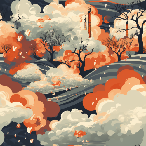 A network of lines and geometric patterns that mimic the veins of a leaf or cracks in ice. These patterns infiltrate the silhouettes of wild animals and warriors, suggesting their innate connection to nature and the harshness of their environment.
