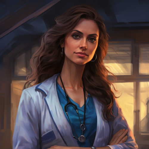 photo of nurse who would fit in in a dnd adventure or the lord of the rings. She wears scrubs and armor and carries a stethoscope and has a sword --sref 3489295445 --v 6.1