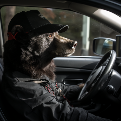 portrait of dog, wire haired pointer, smiling, chubby, black mens semi-rimless eyeglasses, trucker cap, denim jacket, black eyebrows, long full white beard, 3d character from Disney Pixar, no human, outside, daytime, black box, cinematic edge lighting --ar 1:1