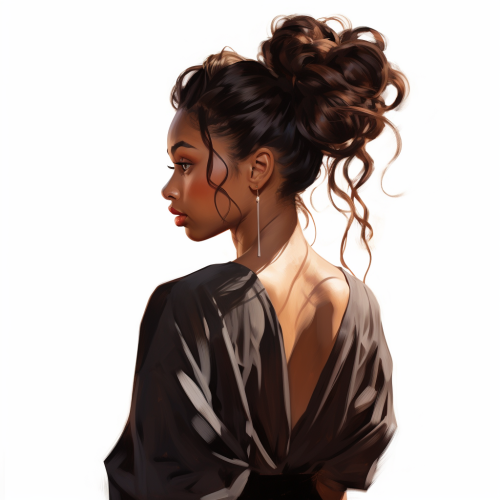 Gorgeous black woman, long hair, messy bun, faceless illustration --s 250