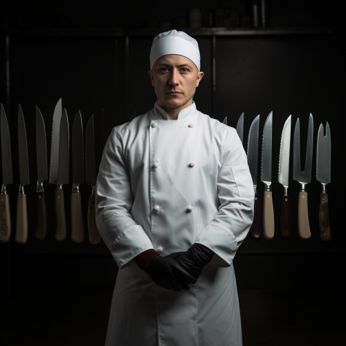 Twin knives they have a simple but elegent design, The blade is flat, long, and sharp resembling both a dagger and a chef's knife. They are made of uncooked pasta. The background features tomatoes and basil