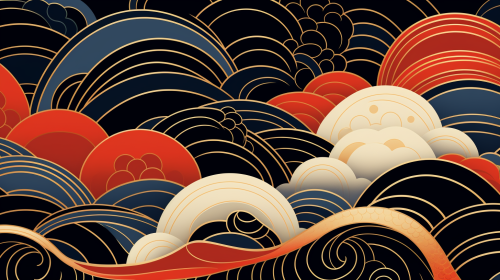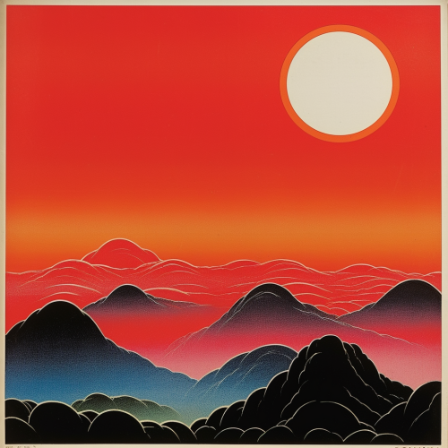 Japanese graphic design from 1970s, bold shapes, traditional colors, retro-futurism, posters