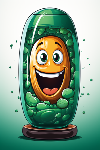 cartoon styled pill with huge smile and wide eyes, vector style, tshirt design, graphic design --ar 2:3 --s 750 --v 5.2 --style raw