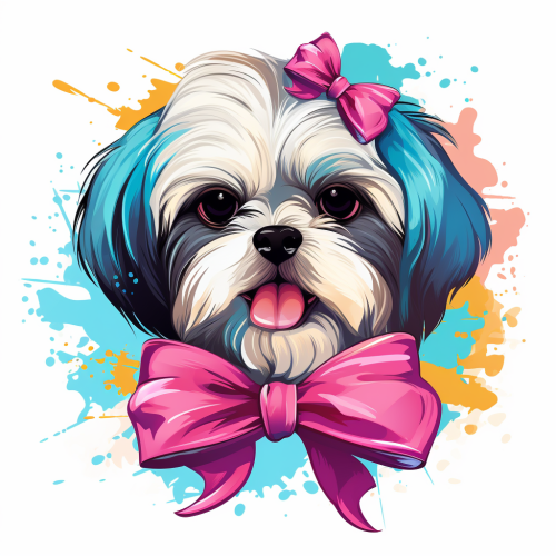 Graphic tshirt vector of a cute happy shih-tzu, wearing bow, detail design, colorful, contour, white background