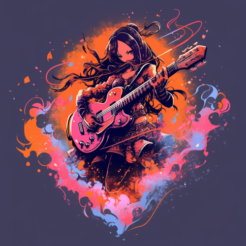 graphic tshirt design, 90s japanese guitar, solid background --niji 5