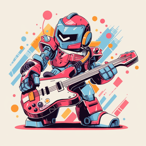 graphic tshirt design, a robot playing guitar, solid background, flat colors --niji 5