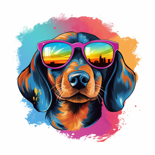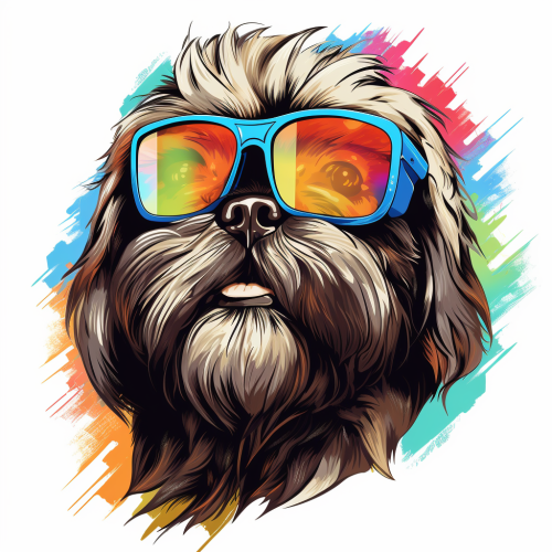 Graphic tshirt vector of a cute happy shih-tzu, wearing sunglasses, detail design, colorful, contour, white background