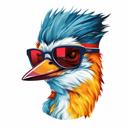 Graphic tshirt vector of a cute happy woodpecker, wearing sunglasses, detail design, colorful, contour, white background