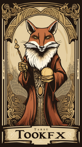 cartoon stylized tarot card, the fool, magick fox person --ar 9:16
