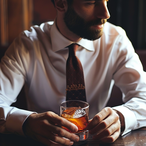 Stylish man sipping Negroni tea in Italian café