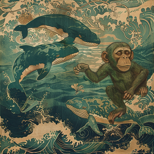 #104033 a man on a ship swims among whales in the atlantic ocean --v 6.0 --ar 4:7