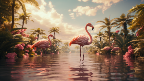 isometric flamingos gambling in a casino in a sportsbook tropical vibe