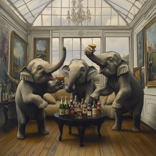 A turkey under a glass dome on top of a black marble table, in a dark room with painted walls and birds flying in the background, hyper-realistic photography in the style of [Artist name].