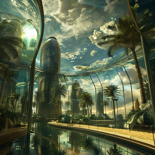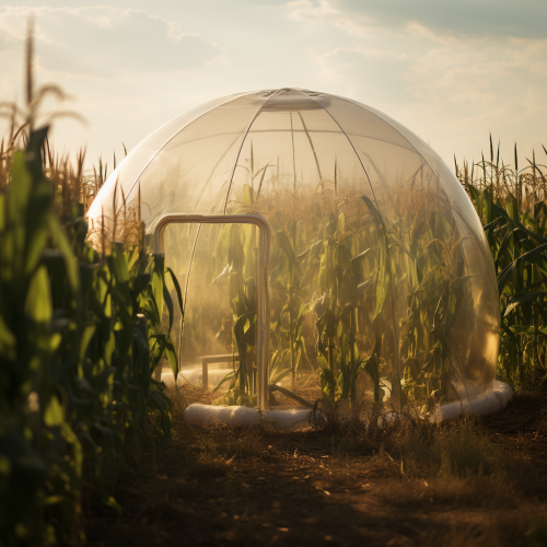 a cornfield protected with a huge glass shield dome, nature photography --s 250