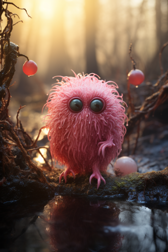 Amazing raspberry monster rising from the swamp, Octane render, dusk lighting, volumetric lighting --ar 2:3 --c 5 --s 200 --v 5.2