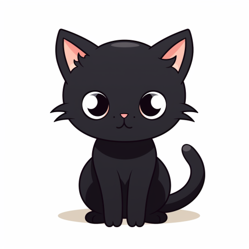cute, kawaii style black cat in a very simple anime style on a white background --s 50