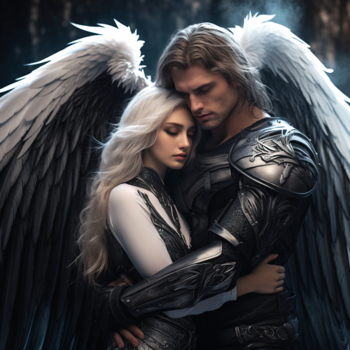 fantasy art, two angel bad girls, both with long white wings, wavy blonde hair and feminine angelic white robes, with the desert sun in the background --no jewelry --ar 9:16