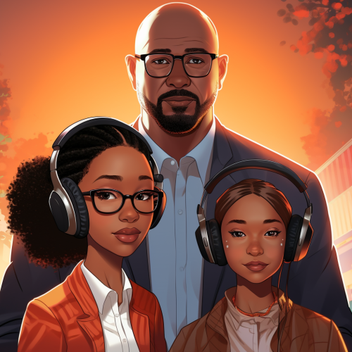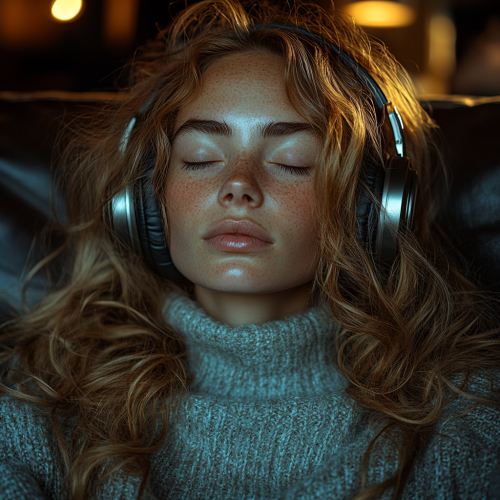 movie still, documentary photography, a editorial, Martin Parr style shoot of Two young women sitting side by side in a dimly lit room, sharing a single headphone while intently looking at a phone held between them, listening to a horror podcast. Their expressions are filled with fear, eyes wide as they absorb the chilling audio. The room is shrouded in shadows, with soft light casting eerie shapes on the walls. The atmosphere is tense and suspenseful, enhanced by subtle details like flickering candles or ghostly shadows. High level of detail, dramatic lighting, and an overall sense of dread High level of detail, realistic lighting and orange halloween light documentary photography, 35mm