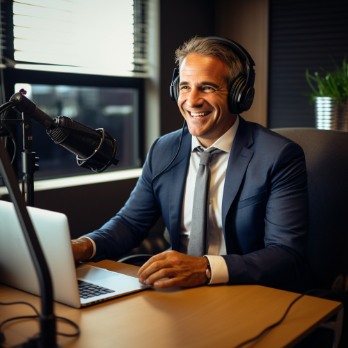 A realistic Lego set box depicting a podcast episode of the ChinaTalk podcast with Jordan Schneider. The set shows Jordan sitting at a table with a podcast crane mic in front of him, a coffee mug on the table, and two small USA and China flags behind him. The box colors feature lots of burnt oranges, reds, and pinks. --v 5.0